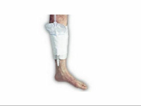 Le système de maintien de la poche sur le patient se présente sous forme d'attaches ou de filet pour fixer la poche de recueil des urines autour de la jambe ou de la cuisse.