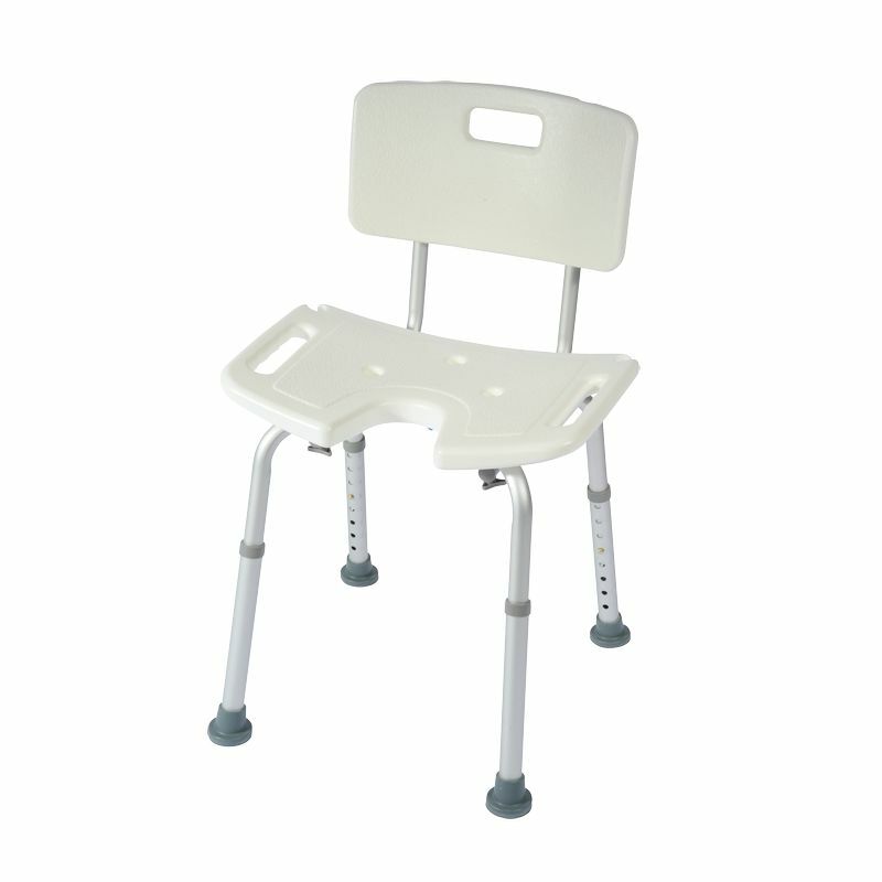 Large assise anatomique munie de trous d'écoulement, de 2 poignées de relèvement, d'une surface grainée antidérapante et de 2 espaces pour fixer la douchette ;