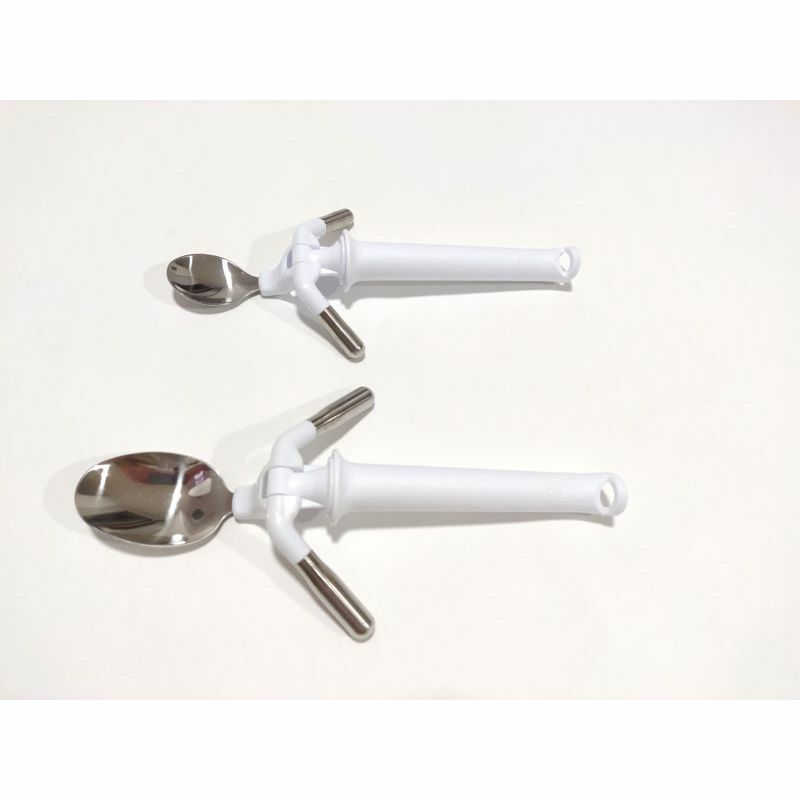 Disponible en 2 tailles : cuillère à soupe et petite cuillère ;