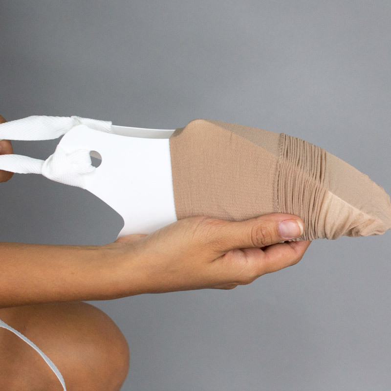 Très facile à utiliser : placer le haut de la chaussette ou du bas de contention dans ses 2 encoches, glisser le pied à l'intérieur et de le remonter grâce à ses lanières en coton ;