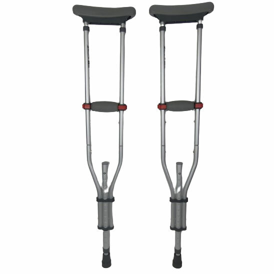Béquilles avec double-appui, sous l'aisselle et porte-mains ;