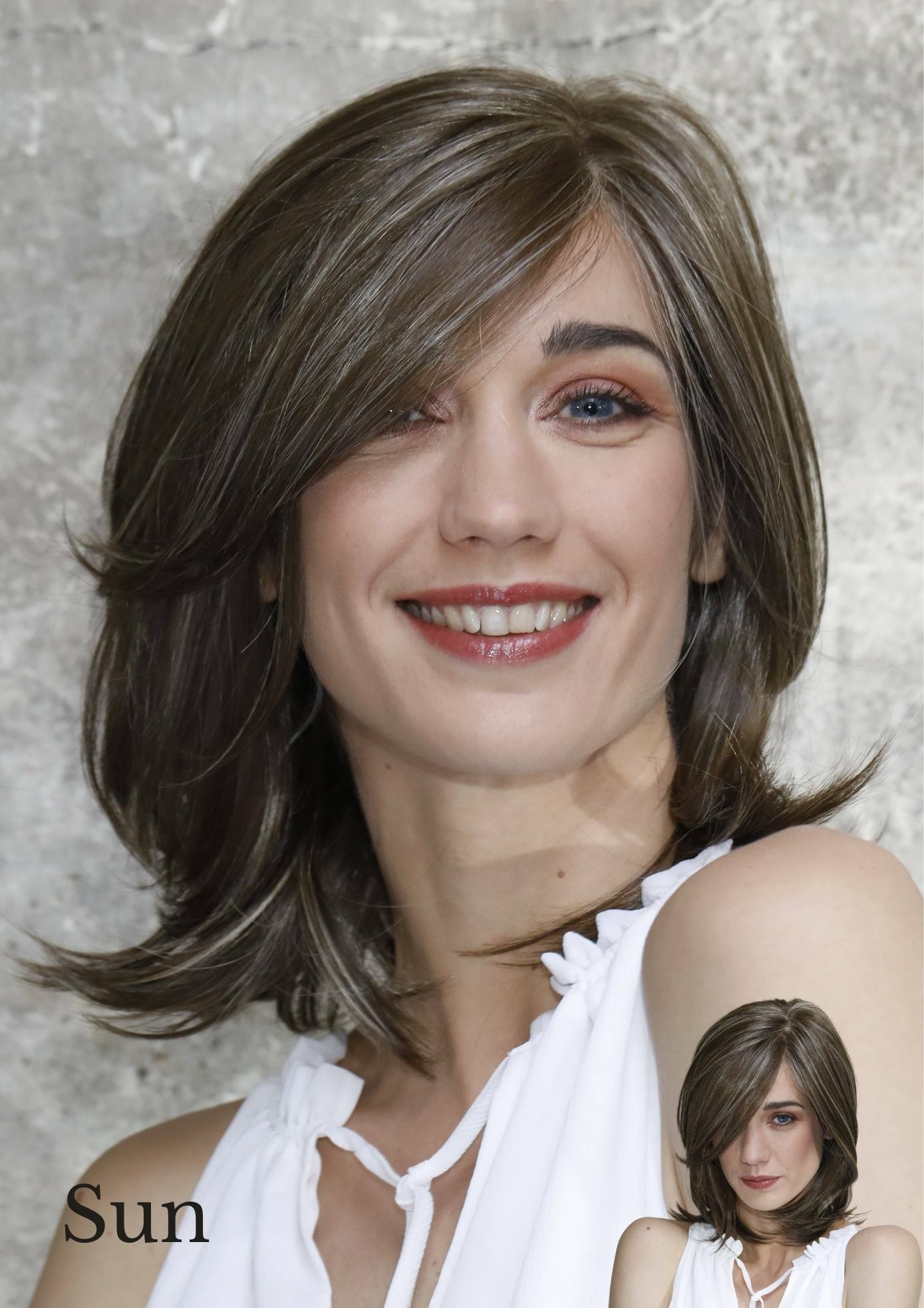 perruque Chatain Clair / méché, mi-longue, de classe 2